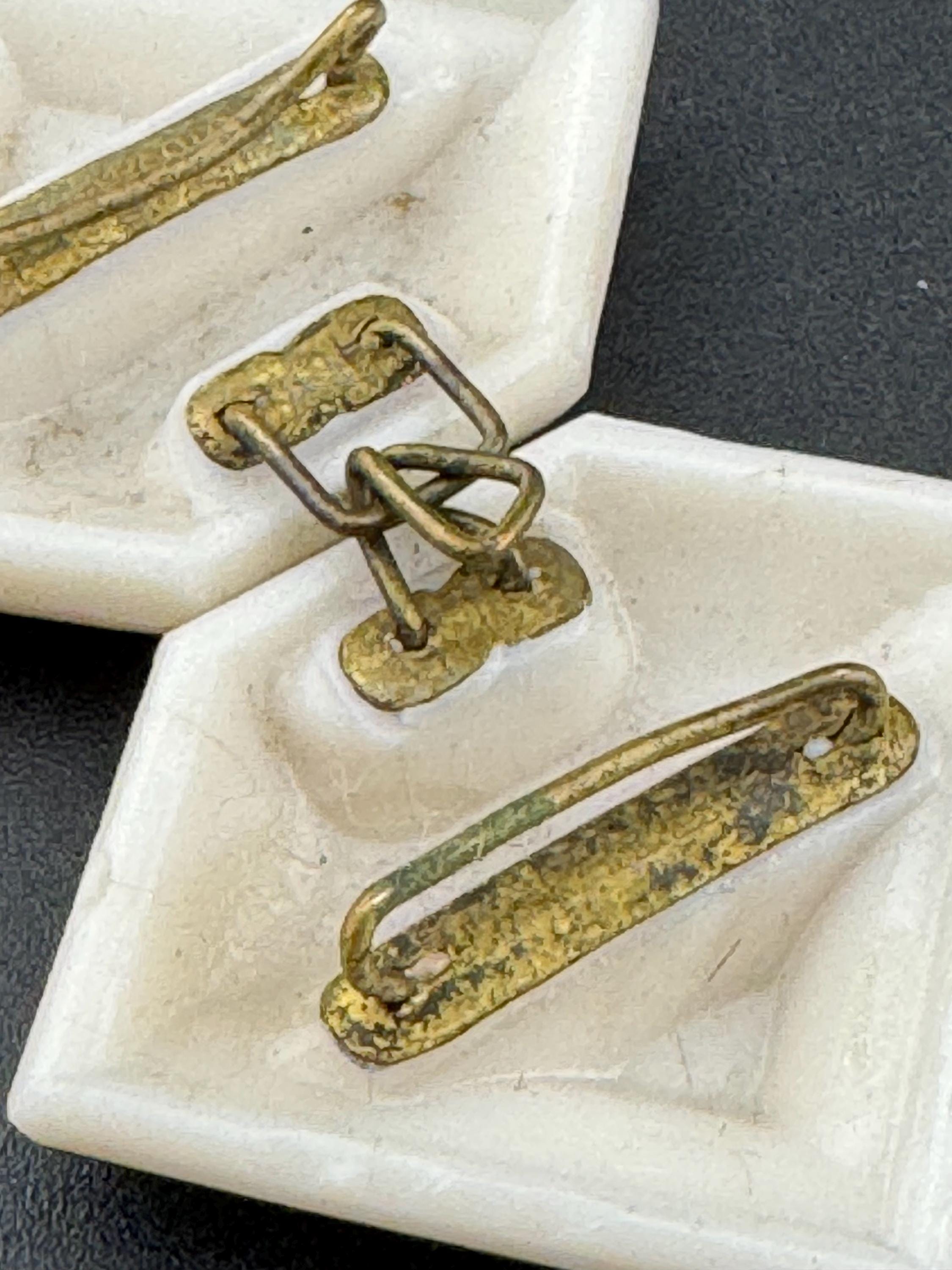 Czech glass Antique Art Deco off white and black striped edge 2 part double Belt Buckle monochrome